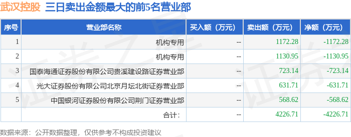 10月22日武汉控股(600168)龙虎榜数据:机构净卖出2303.23万元(3日)