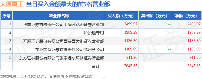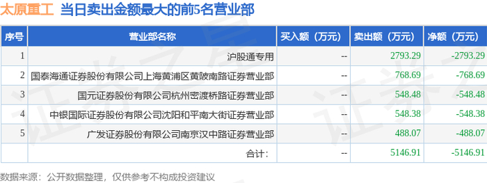 9月26日太原重工(600169)龙虎榜数据:北向资金净卖出804.0万元