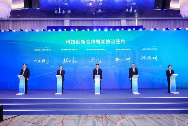 在11月25日举行的上海市住房城乡建设行业科技大会暨长三角建设科技发展论坛上,上海市住房和城乡建设管理委员会副主任张政与上海建工集团股份有限公司总工程师陈晓明、上海隧道工程股份有限公司副总裁葛以衡、华东建筑集团股份有限公司副总裁疏正宏、中国建筑第八工程局有限公司总工程师亓立刚签订科技创新合作框架协议。