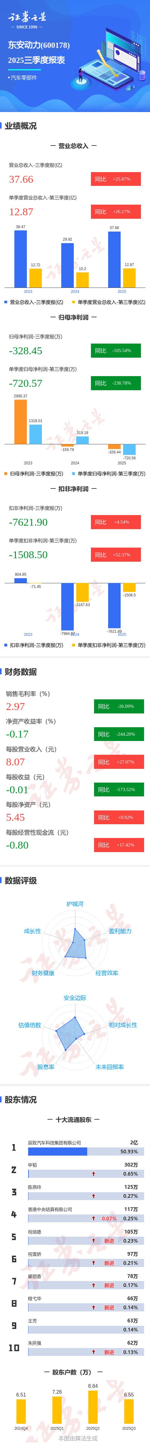 图解东安动力三季报:第三季度单季净利润同比下降238.79%