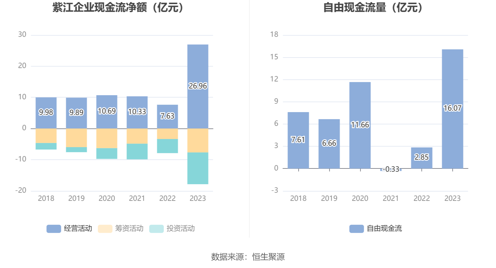 2023年,公司经营活动现金流净额为26.96亿元,同比增长253.34%;筹资活动现金流净额-7.68亿元,同比减少4.32亿元;投资活动现金流净额-10.20亿元,上年同期为-4.53亿元。