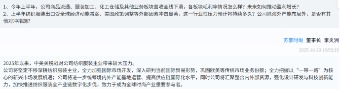 10月20日,苏豪时尚(600287.SH)举行了2025年半年度业绩说明会。完成从“江苏舜天”到“苏豪时尚”的更名后,公司首次以新身份直面市场关注。