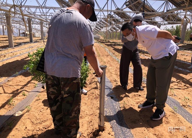 温喜全在自家承包的光伏板农田里栽种蔬菜苗(央广网见习记者 邵玉琴 摄)杭锦旗永兴村60岁的农民温喜全做梦都没想到自己会和高科技的光伏产业关联上。前几年自家的地还是黄沙滩,经过大企业入驻建成“光谷基地”后,如今这里成了高效农田。在一百多亩的太阳能光伏板下,种起了籽瓜、土豆和西红柿,亩均收益一千多元,一年纯收入十来万元。农闲时还可以在光伏园区打零工,从此再也不用外出务工。在永兴村,很多农民变成了“光伏菜农”,吃上了“光伏饭”。