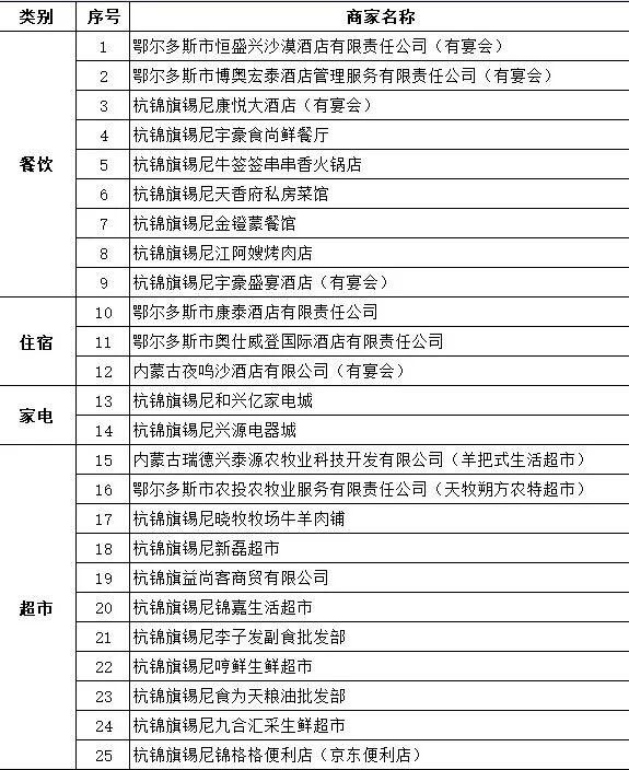 适用商户:本次活动发放的消费券仅限在杭锦旗符合要求的商户使用。各券种每名消费者每天可领取1张。