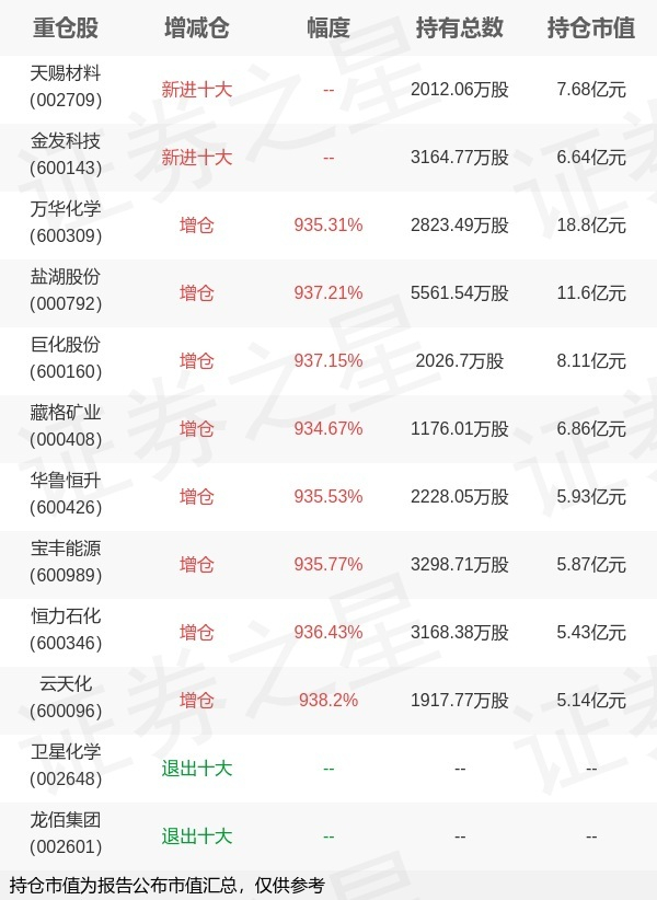 鹏华基金闫冬旗下鹏华中证细分化工产业主题ETF三季报最新持仓,重仓万华化学