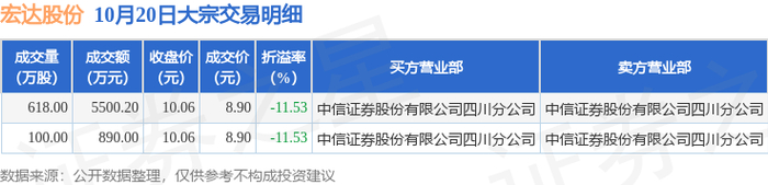 10月20日宏达股份现2笔折价11.53%的大宗交易 合计成交6390.2万元
