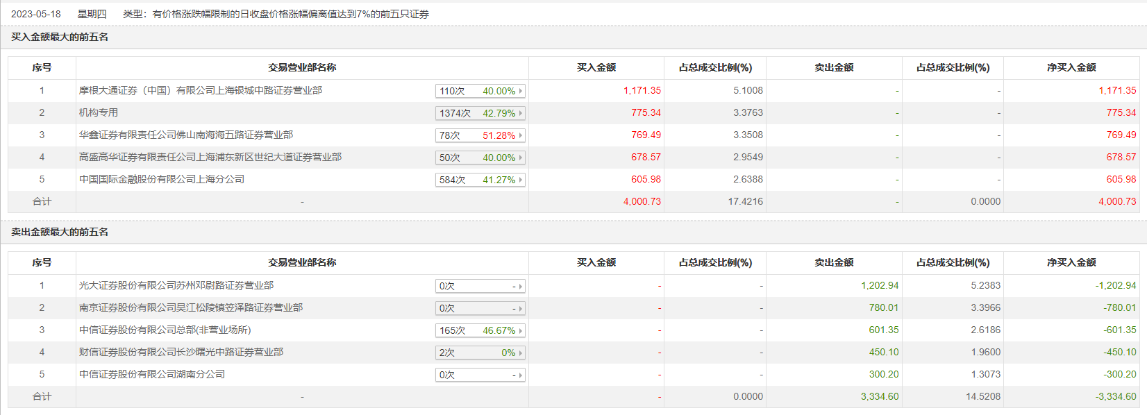 具体来看,机构合计净买入775.34万元。此外,摩根大通上海银城中路证券营业部、华鑫证券佛山南海海五路证券营业部分别买入1171.35万元、769.49万元;光大证券苏州邓尉路证券营业部、南京证券吴江松陵镇笠泽路证券营业部分别卖出1202.94万元、780.01万元。