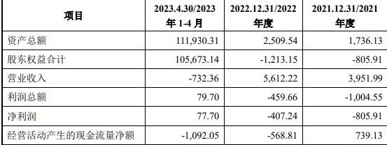 函件显示,预案显示,标的南充发展于2021年4月30日成立,公司未经审计(未进行同一控制下企业合并调整)的2021年、2022年及2023年1-4月的单体报表主要财务指标如下:
