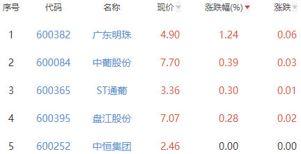 其中,广东明珠、中葡股份、ST通葡、盘江股份和中恒集团位列板块涨幅前五位,涨幅分别为1.24%、0.39%、0.30%、0.28%和0.00%。