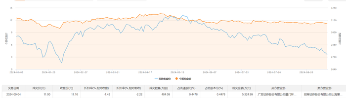 9月4日大宗交易成交484.09万股,成交额5324.99万元,占当日总成交额的71.13%,成交价11元,较市场收盘价11.16元折价1.43%。
