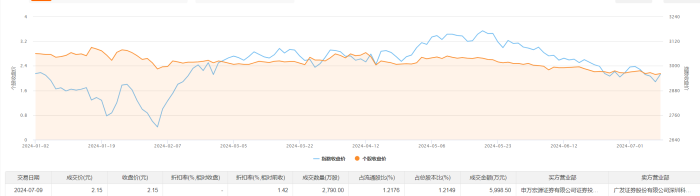 7月9日大宗交易成交2790万股,成交额5998.5万元,占当日总成交额的69.17%,成交价2.15元,较市场收盘价2.15元持平。