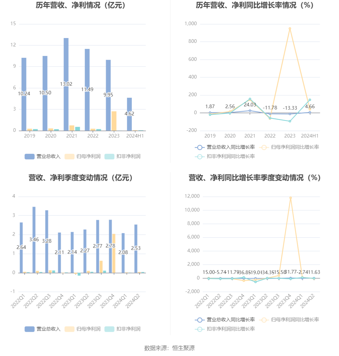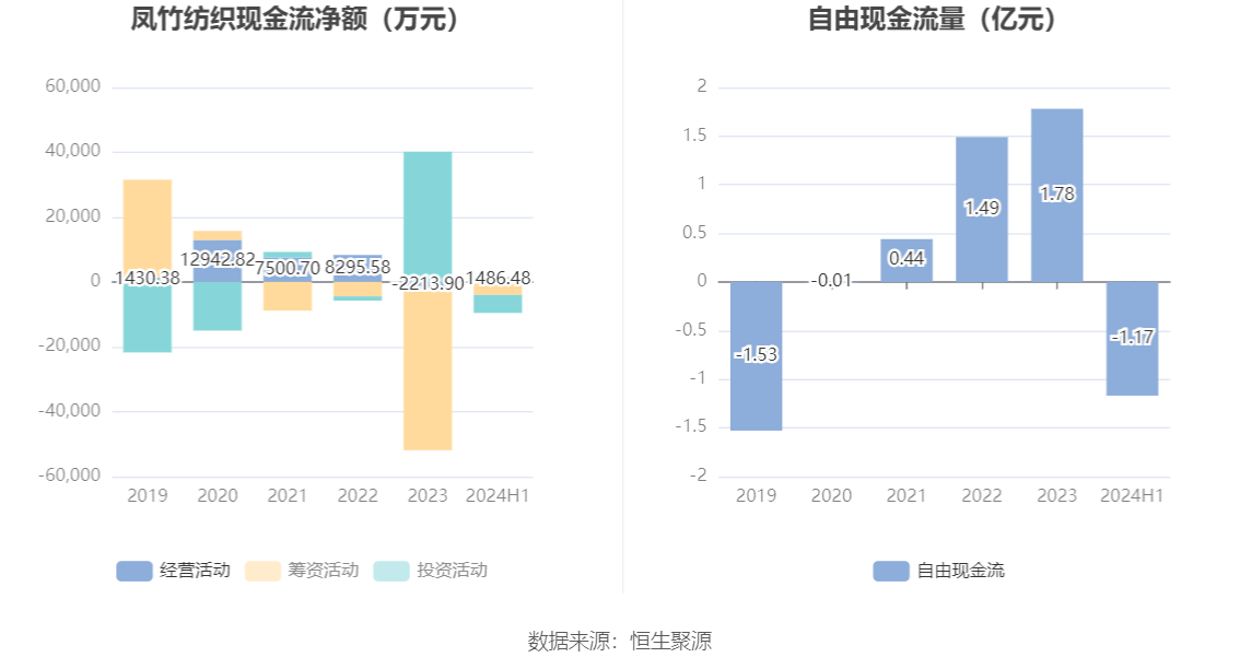 进一步统计发现,2024年上半年公司自由现金流为-1.17亿元,上年同期为-0.60亿元。