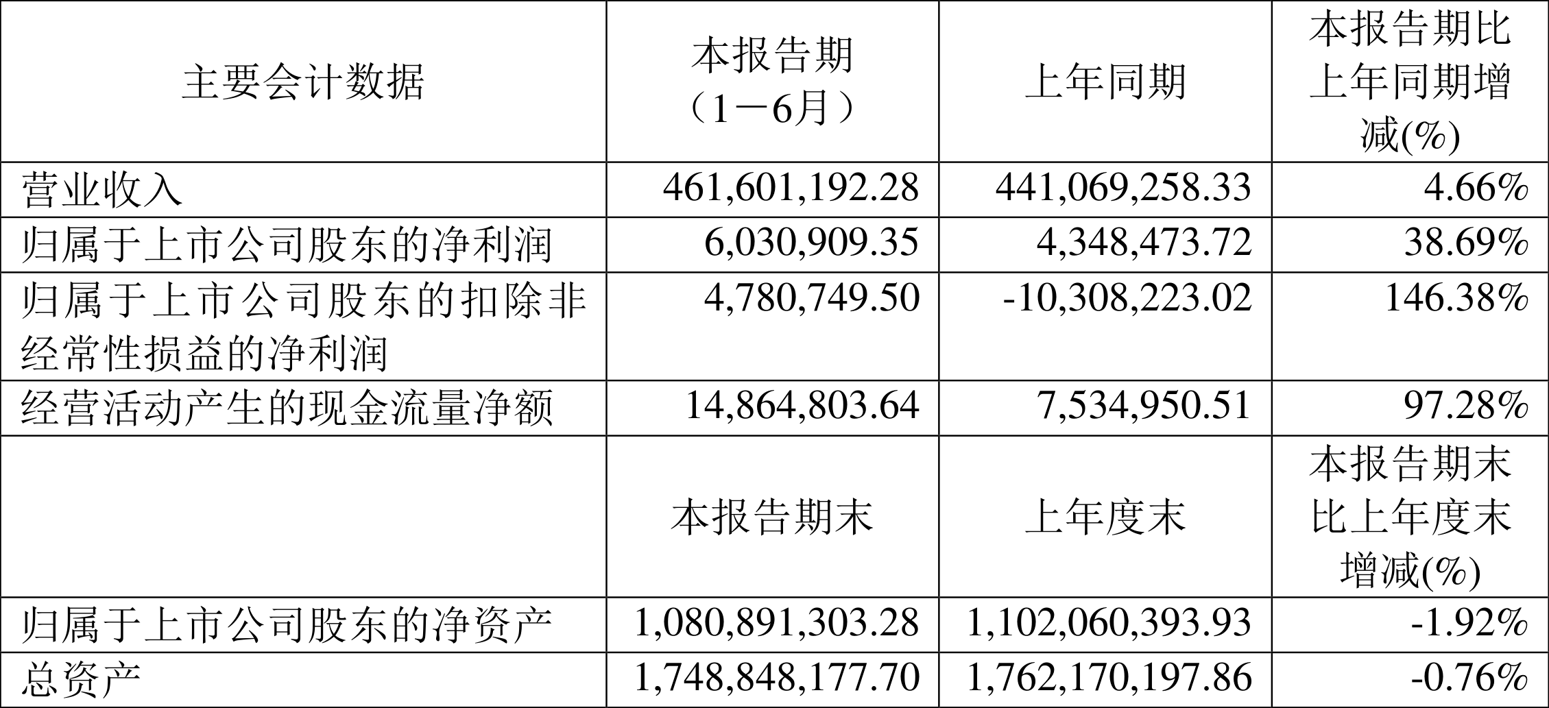 2024年上半年,公司经营活动现金流净额为1486.48万元,同比增长97.28%;筹资活动现金流净额-4032.98万元,同比增加7303.19万元;投资活动现金流净额-5549.76万元,上年同期为-2666.53万元。