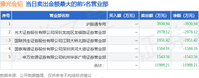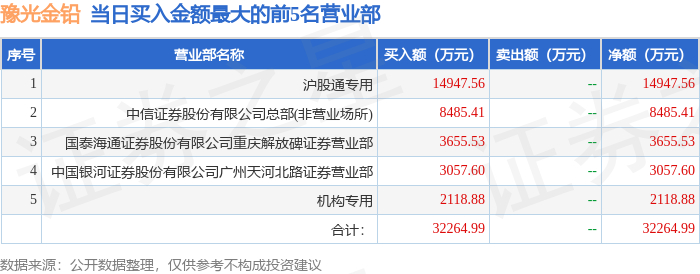 10月13日豫光金铅(600531)龙虎榜数据:机构净买入2118.88万元,北向资金净买入1.1亿元