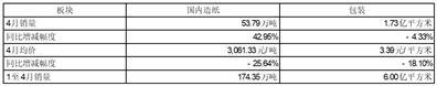 山鹰国际控股股份公司(以下简称“公司”)2023年4月主要板块销量数据如下表所示: