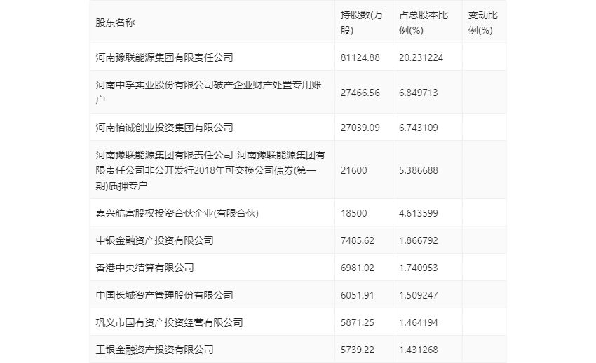值得注意的是,根据年报数据,中孚实业25.03%股份处于质押状态。其中,第一大股东河南豫联能源集团有限责任公司质押7.73亿股公司股份,占其全部持股的95.24%。