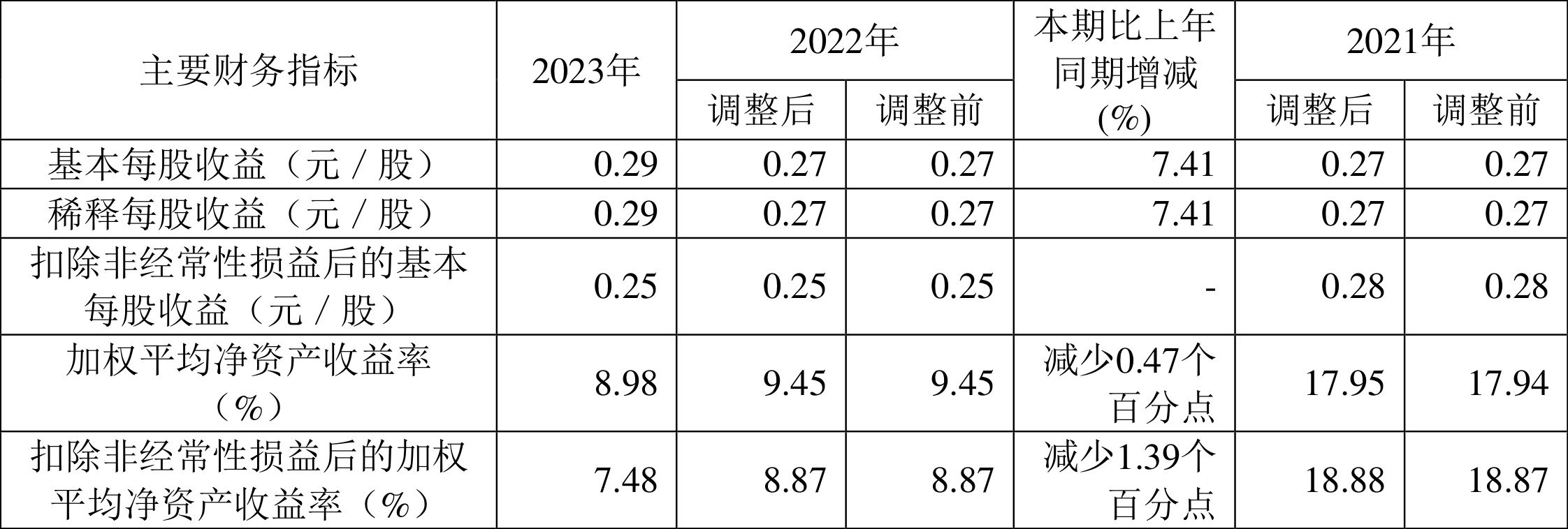 数据显示,2023年公司加权平均净资产收益率为8.98%,较上年同期下降0.47个百分点;公司2023年投入资本回报率为10.55%,较上年同期增长0.38个百分点。