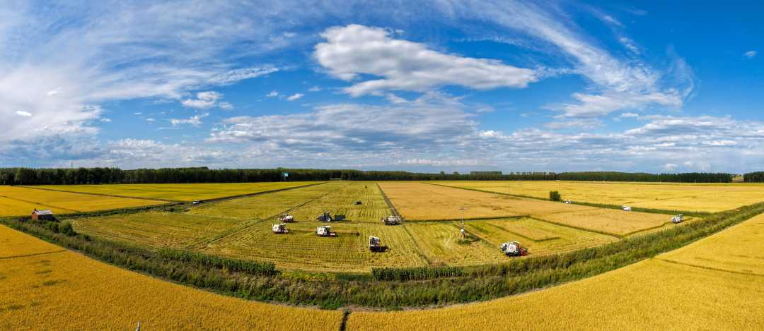 农业股份有限公司友谊分公司北第九管理区开启今秋水稻收获第一镰,种植户在进行联合收获作业。