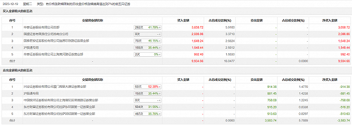 中毅达12月19日涨停,全天换手率达17.1%,振幅达12.55%。龙虎榜数据显示,营业部席位合计净买入6350.92万元。其中,华泰证券总部、国盛证券苏南分公司分别买入3658.72万元、2086.86万元;兴业证券厦门湖里大道证券营业部、沪股通专用分别卖出914.38万元、881.45万元。