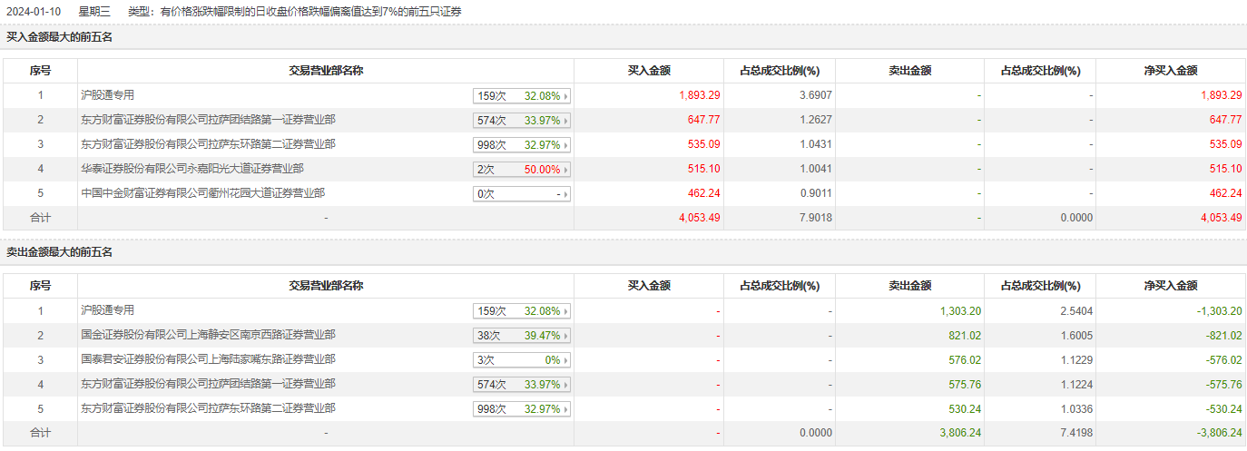 中毅达1月10日跌8.96%,全天换手率达13.75%,振幅达8.06%。龙虎榜数据显示,营业部席位合计净买入247.25万元。其中,沪股通专用、国金证券上海静安区南京西路证券营业部分别卖出1303.20万元、821.02万元;沪股通专用、东方财富证券拉萨团结路第一证券营业部分别买入1893.29万元、647.77万元。