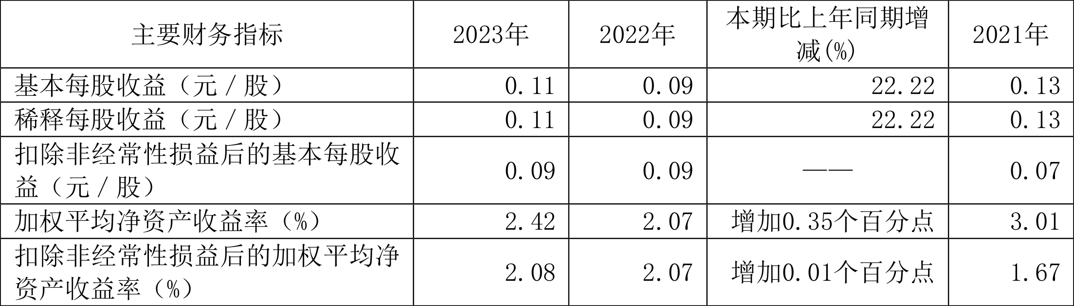 数据显示,2023年公司加权平均净资产收益率为2.42%,较上年同期增长0.35个百分点;公司2023年投入资本回报率为2.45%,较上年同期增长0.35个百分点。
