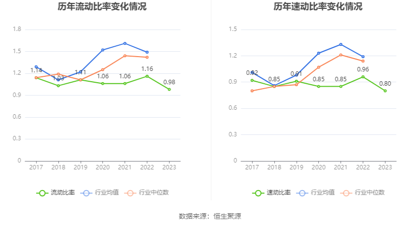 2023年,公司流动比率为0.98,速动比率为0.80。