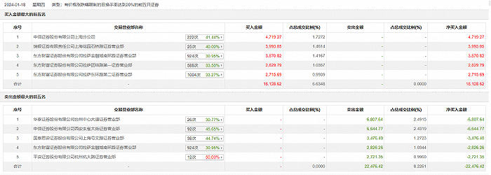 具体来看,知名游资现身龙虎榜,中信证券上海分公司、瑞银证券上海花园石桥路证券营业部分别买入4719.27万元、3993.05万元;方新侠(华泰证券台州中心大道证券营业部)、方新侠(中信证券西安朱雀大街证券营业部)分别卖出6807.64万元、6644.77万元。