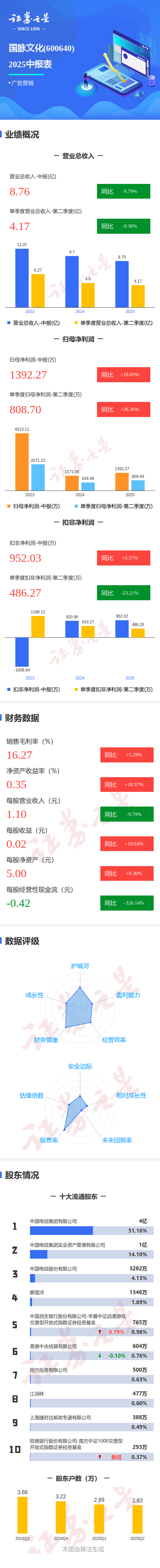 图解国脉文化中报:第二季度单季净利润同比增长26.36%