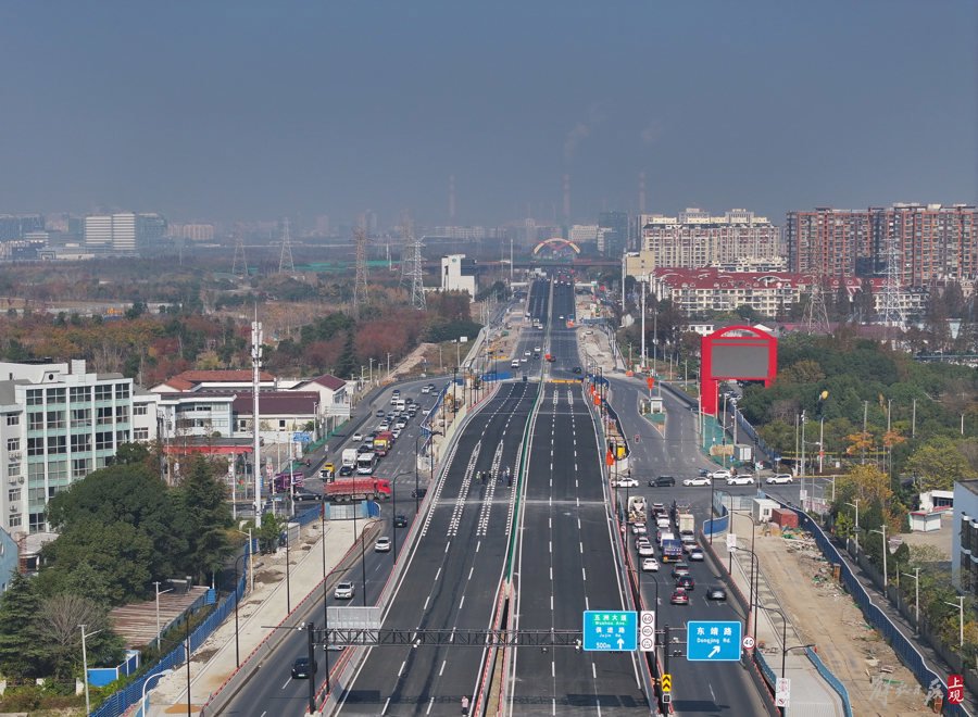 标志着全长6.6公里的杨高北路(洲海路-金海路)改建工程主线竣工通车,从外高桥保税区到金桥开发区,通过主线跨线桥,一路上将比原先少了8个红绿灯。