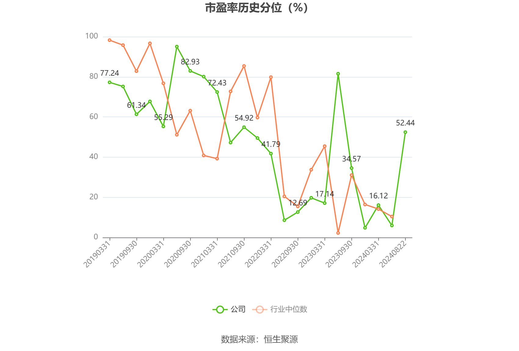 市盈率为负时,不显示当期分位数,会导致折线图中断。