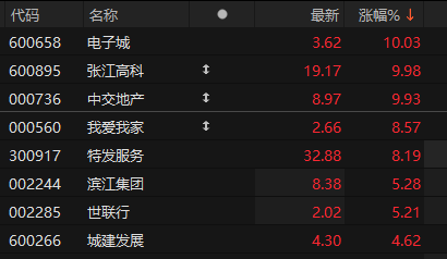 上证报中国证券网讯 9月18日午后,房地产板块异动拉升。13时54分,