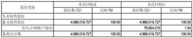 (二)2024年1月31日,公司完成回购,已实际回购公司股份76,654,015股,占公司总股本的1.54%,回购最高价格13.90元/股,回购最低价格11.04元/股,回购均价13.05元/股,使用资金总额999,865,180.16元(不含交易费用)。