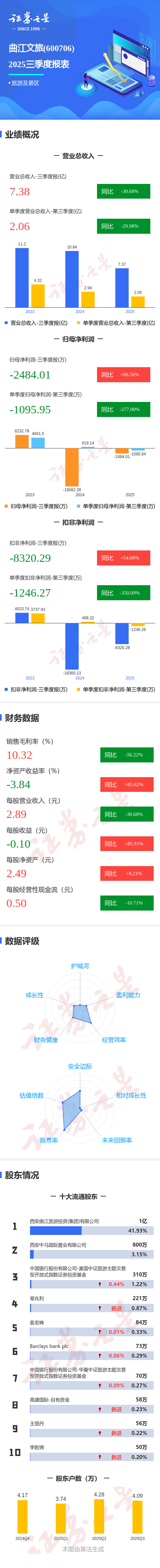 图解曲江文旅三季报:第三季度单季净利润同比下降277.01%