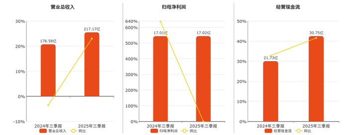 公司营业总收入为217.17亿元。归母净利润为17.02亿元。经营活动现金净流入为30.75亿元。