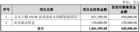 本次募投项目“义乌六期15GW高效晶硅太阳能电池项目”,是该公司N型ABC电池领域的扩产,产能是现有产能的2.3倍。
