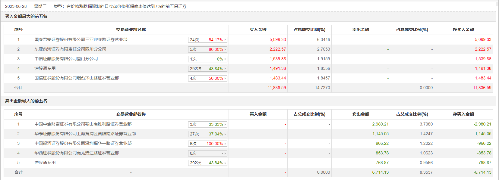 具体来看,国泰君安证券三亚迎宾路证券营业部、东亚前海证券四川分公司分别买入5099.33万元、2222.57万元;中国中金财富证券有限公司鞍山南胜利路证券营业部、华泰证券上海黄浦区黄陂南路证券营业部分别卖出2980.21万元、1145.05万元。