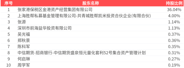 公司股东户数为7.98万户,前十大股东持股数量为5.30亿股,占总股本比例为44.16%,前十大股东持股情况如下:
