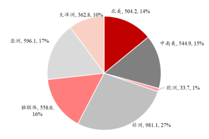 尤其是涨幅最为凶猛的黄金、受AI刺激需求量的铜,非洲都拥有着极高的储量和产量。根据世界黄金协会的统计,2021年非洲合计生产981吨黄金,占全球总产量的27.4%,排名全球第一;关于铜方面,2022年全球铜产量2200万吨,其中仅刚果(金)与赞比亚合计产量就达到300万吨,占比约13.6%。且非洲铜矿品位远高于世界平均水准,以近年来紫金矿业在非投资的卡莫阿-卡库拉项目为例,铜资源平均品位为2.56%,居于世界五大铜矿之首,是世界上最大的高品位、未开发铜矿。