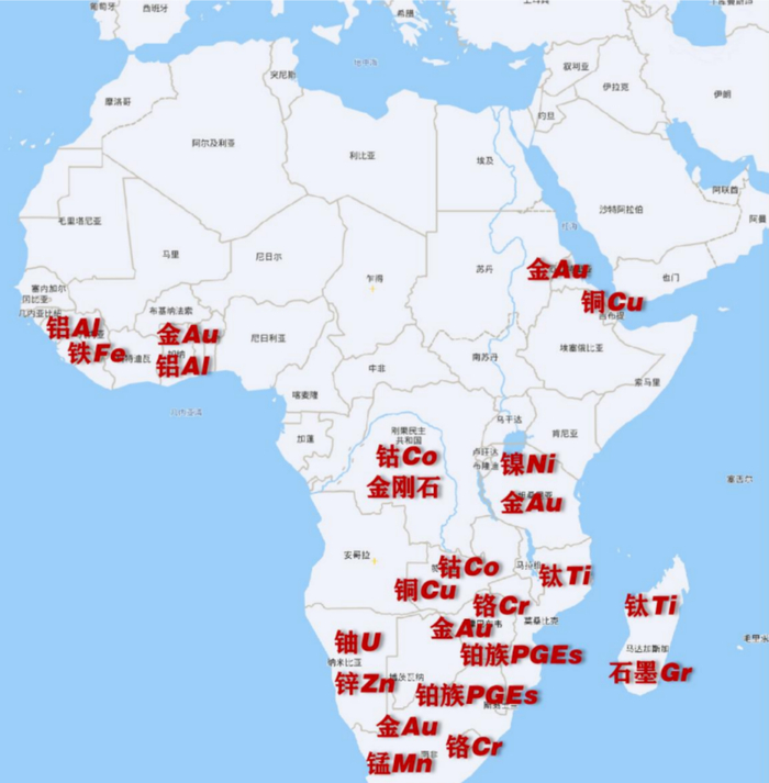 图片说明:非洲矿产资源分布图,数据来源于浙商证券