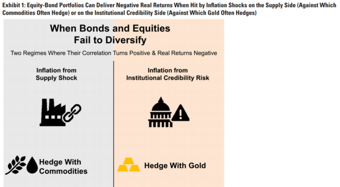 图片说明:高盛认为股票和债券均无法有效对冲未来的潜在风险,世界将进入由大宗商品控制的周期,数据来源于高盛