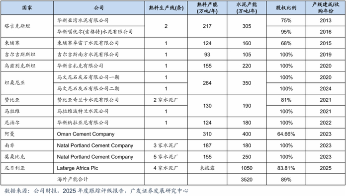 图片说明:华新水泥海外产能汇总,数据来源于广发证券