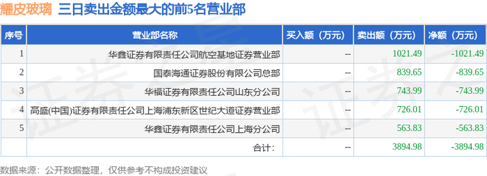 10月15日耀皮玻璃(600819)龙虎榜数据