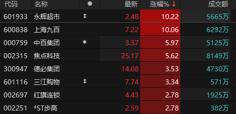商贸零售板块拉升走高 永辉超市、上海九百涨停