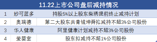 11月22日上市公司减持汇总:妙可蓝多等4股拟减持(表)
