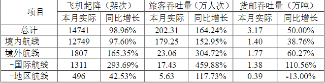 厦门空港:11月旅客吞吐量202.31万人次,同比增长164.24%