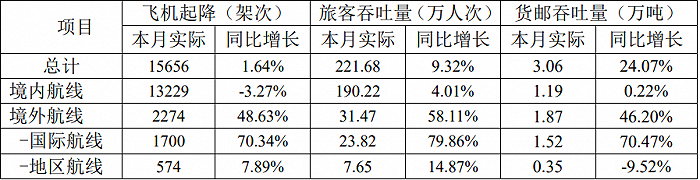 5月8日公告,公司4月旅客吞吐量221.68万人次,同比增长9.32%。