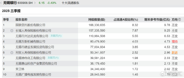 股东结构的变化,往往是市场对上市公司信心的“晴雨表”。无锡银行2025年三季报显示,前十大流通股东出现显著“换防”,其中北向资金的退出和利安人寿的新进,尤为值得关注。