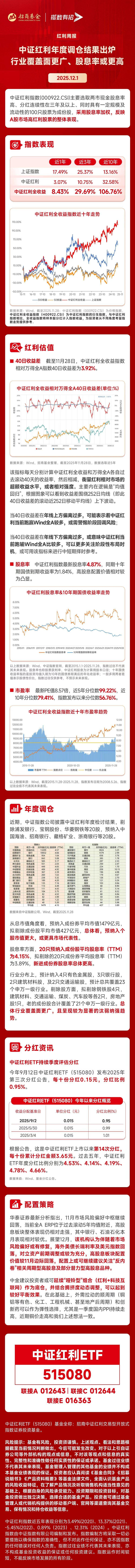 近期,中证指数公司披露中证红利指数年度检讨结果,剔除浦发银行、宝钢股份、华菱钢铁、深高速等20股,预纳入中国海油、招商银行、藏格矿业、浙商银行、永兴材料等20股。本次调整将于12月12日收市后生效。