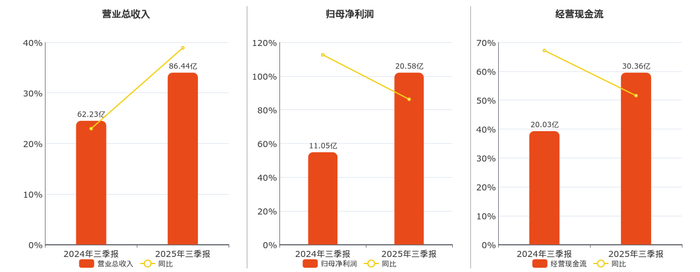 公司营业总收入为86.44亿元。归母净利润为20.58亿元。经营活动现金净流入为30.36亿元。