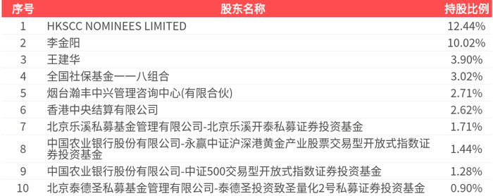 公司股东户数为10.40万户,前十大股东持股数量为7.61亿股,占总股本比例为40.04%,前十大股东持股情况如下: